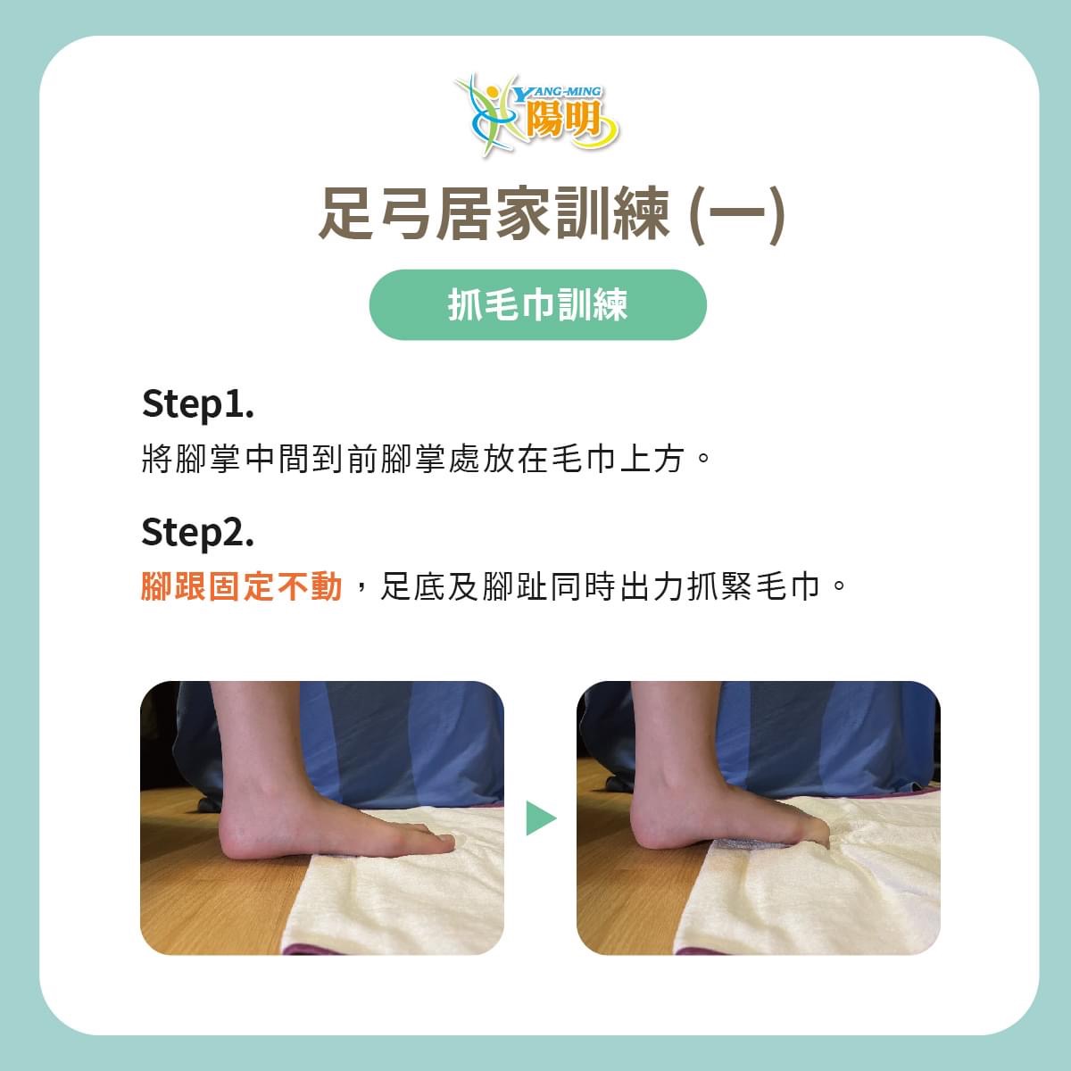 1. 抓毛巾訓練:讓孩子用腳趾抓取毛巾,這能有效訓練足底內在肌肉,強化足弓支撐力。