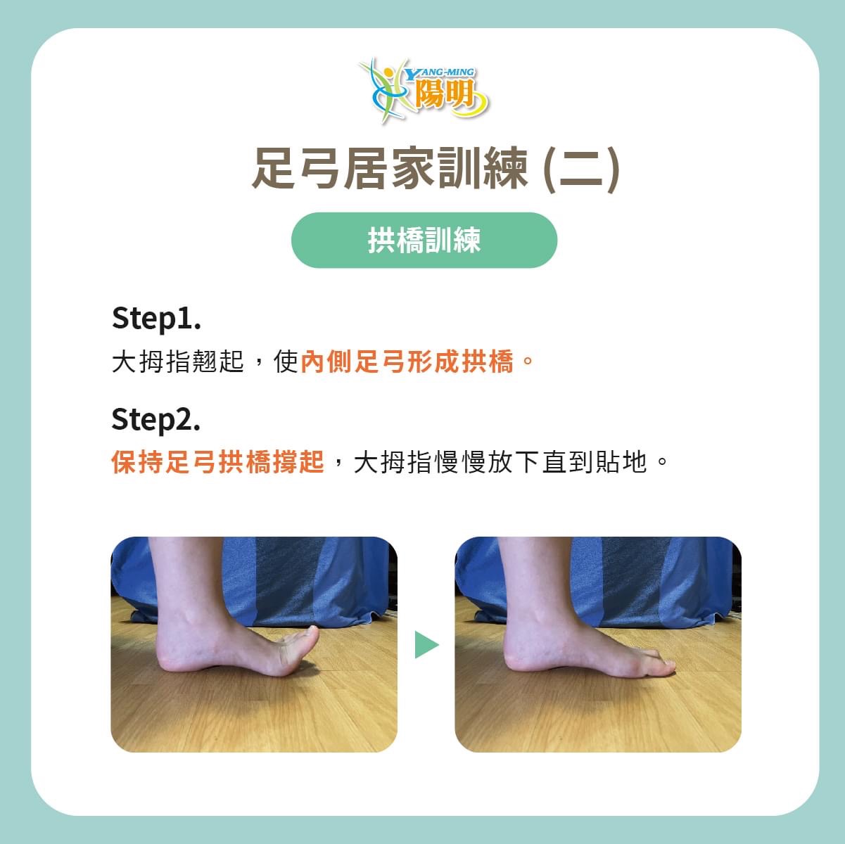 2. 拱橋訓練:透過大拇指的上下翹動,形成「拱橋效應」,提升足弓的穩定性和支撐效果。