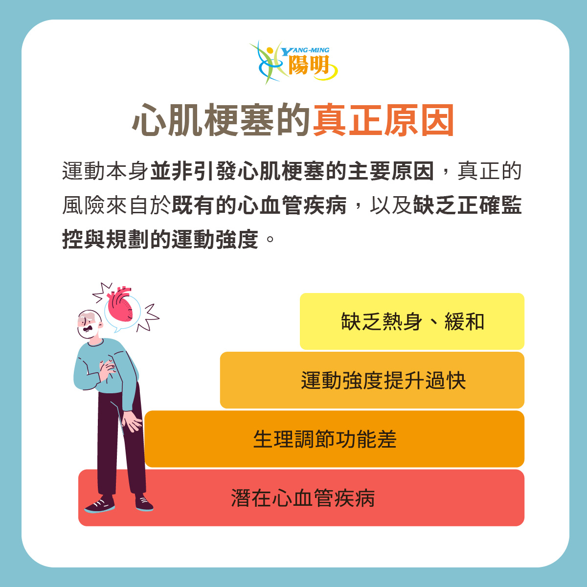 不是喔!平時不良生活習慣如抽菸、三高等,產生潛在的 #心血管疾病 加上 #未經監測及評估 的運動強度,才是導致心肌梗塞的主要原因。